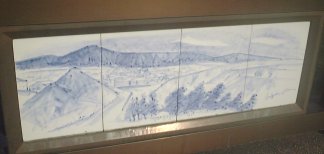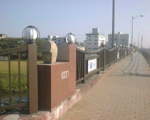 今村橋の欄干に貼りつけられた瀬戸染付焼きの陶板
