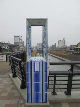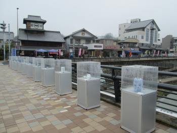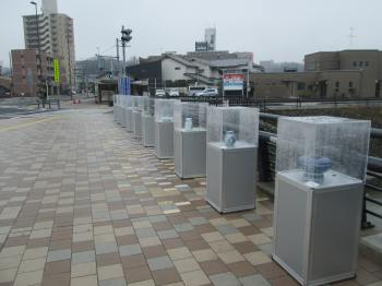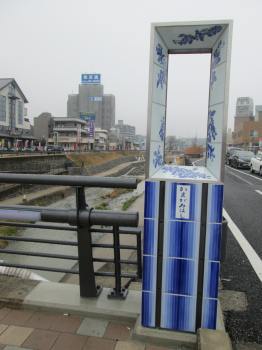 | 窯神橋の歩道の東側の瀬戸染付焼の作品群(2月2日まで展示) |