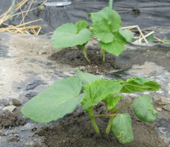 | きゅうり(苗から) | ナス(苗から)<右にバジル> |