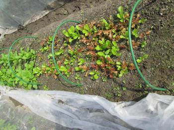 | 2013年5月6日植苗と種まき完了 <種まきの個所には不織布をベタ掛け> |