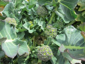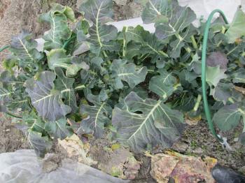 | ブロッコリー1個のみ収穫。他の2個は未だ小さい。 |