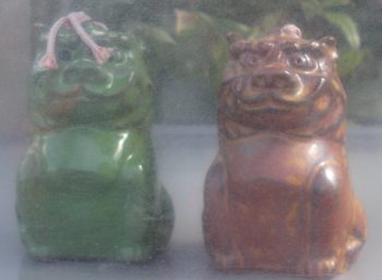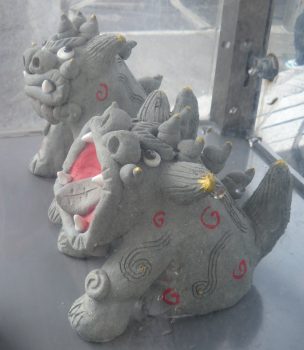 | 瀬戸市マルチメディア伝承工芸館の北 <陶土鈴 狛犬 陶土鈴 狛犬 緑 松葉産業> |
