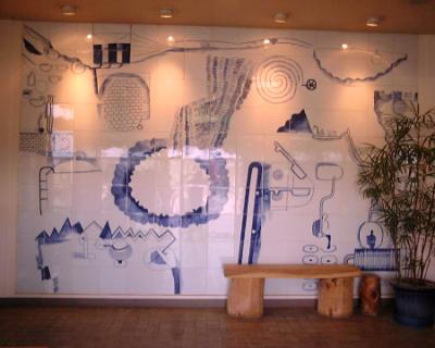 | 公立陶生病院待合室 西の陶壁 <拡大図は「ヤフーフォト」参照> Waiting room in public hospital, Tousei Byouin Pottery wall at west [See "Yahoo photo" for enlargement ] |