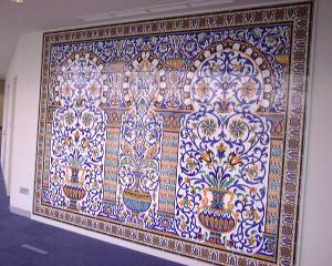 | 「パルティせと」3階にある、瀬戸市の姉妹都市である チュニジアのナブール市から瀬戸市へ寄贈された タイル製壁画<縦2.5x横3m> |