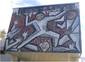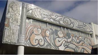 | 図書館の南の外壁の陶画 Pottery painting on south outside wall of Seto City Library |