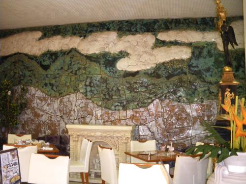 | べら珈琲 瀬戸店 瀬戸市陶原町1丁目8番地 愛陶工会館1F <上皮種手術(2010/10/22)後の状況を、あさいクリニックで診察して もらってからここでモーニング。 喫煙室と禁煙室の2つの部屋があるので お気に入り。この陶壁は禁煙室にある> |