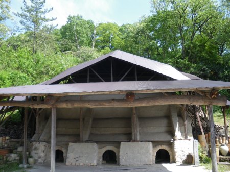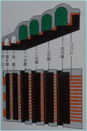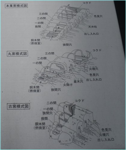 | 一里塚本業窯(側面) 一里塚本業窯(市指定有形民俗文化財)<説明の出所:説明板> 築造年 昭和25年(1950) 形式・構造 連房式登窯(4連房)、縦狭間(たてざま) 規模 全長約16m、最大幅9m <ウェブ作者→洞本業窯よりやや大きい> 指定年月日 昭和50(1975)年7月21日 本業窯は、登窯の一種で、本業製品(陶器)を焼成する窯として、江戸時代後期から使用されている。 磁器を焼成する丸窯とともに、瀬戸を代表する窯である。この本業窯は、東洞にあった13連房という 巨大な本業窯である、「奥洞窯」の窯材を使い、昭和25年に再構築されたものである。3つの焚口 (たきぐち)、胴木間(どうぎま)、捨間(すてま)、製品を焼成する4つの部屋、煙道(えんどう・コクド) から成る。この窯では市の指定を受ける昭和50年(1975)まで、火鉢、水甕(みずがめ)、すり鉢など を年3回程度焼成していた。当時の姿をとどめる本業窯は、この本業窯と、同じく「奥洞窯」の窯材を使い 築造された「洞 本業窯」との2基のみであり、大変貴重なものである。 瀬戸市教育委員会 |