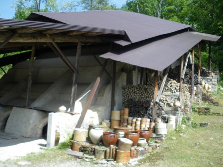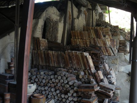 本業窯(側面) ★洞 本業窯(市指定有形民俗文化財)<説明の出所:説明板> 築造年 昭和24年(1949) 形式・構造 連房式登窯(4連房)、縦狭間(たてざま) 規模 全長14m、最大幅7m 指定年月日 平成7年2月13日 本業窯は、登窯の一種で、本業製品(陶器)を焼成する窯として、江戸時代後期から 使用されている。磁器を焼成する丸窯とともに、瀬戸を代表する窯である。 この本業窯は、この窯の上段にあった13連房という巨大な本業窯である、「奥洞窯」 の窯材を使い、昭和24年に再構築されたものである。3つの焚口(たきぐち)、 胴木間(どうざま)、捨間(すてま)、製品を焼成する4つの部屋、煙道(えんどう・コクド) から成る。 この窯では昭和54年(1979)まで、水甕(みずがめ)、水鉢、こね鉢、紅鉢(べにばち)など を年数回焼成していた。 当時の姿をとどめる本業窯は、この本業窯と、同じく「奥洞窯」の窯材を使い築造された 「一里塚 本業窯」との2基のみであり、大変貴重なものである。 瀬戸市教育委員会 |