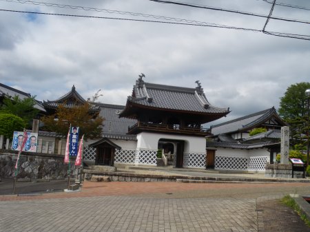 宝泉寺山門 宝泉寺山門前にある「陶都の祖 渡辺幸平のこと」の石碑に刻んである文章: 渡辺幸平は江戸時代末期から明治初期にかけて今日の瀬戸ノベルティの源と なった陶彫の技巧を確立した陶工である 手捻りの原型にヘラを用いた陶彫を 導入 その技法は後の六代川本半助 瀬戸陶器学校教員寺内半月らに受け継がれ 原型製作と鋳込成形法の発達によって瀬戸地方は日本一のノベルティと袋物の 産地となった 「琴々堂」「鶴鳴」と号し 神仏像に秀作を残した 代表作に1867(慶応3年) 建立した陶祖碑台座の唐獅子がある 出身は讃岐国の士族で高松藩主松平侯の 近習役のとき ゆえあって京都に逃れ鋳銅型師となったが陶芸修得を志し 瀬戸の人 で清水焼の井上松兵衛に身を寄せた その後 松兵衛の口添えで瀬戸の加藤三年 川本半助の陶房に移って白磁に無釉の陶彫に練達 後進の指導に当たった 清貧無欲の人で米飯 酒 茶は好まず専ら粥に梅干の粗食を常とした 1872(明治5年)没 享年不詳 生涯独身であった 墓碑は弟子と有志が建立したが古くなり1960(昭和35年) 瀬戸ノベルティ業界等の有志によって復元された その石碑が再び老朽化したため 1998(平成10年5月)その碑を修復した |