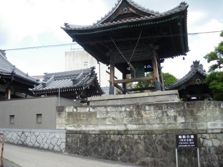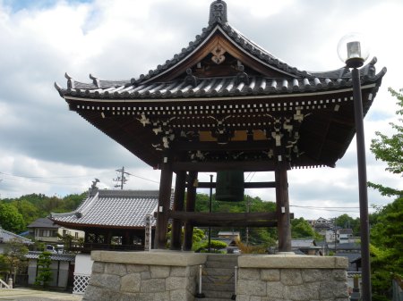 | 宝泉寺の鐘楼 鐘楼の左奥の木札には「大圓鏡智・平等性智・妙観察智」などを書いてある |
