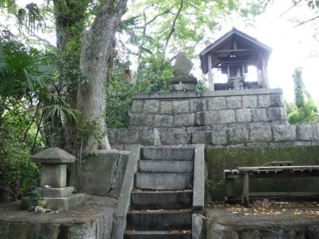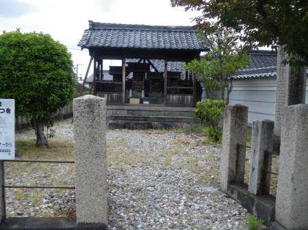 | 天神社 (右横は宝泉寺の塀;宝泉寺に隣接し、荒れて、手入れがあまりされていないようだ) |