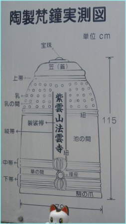 | 陶製梵鐘実測図 (上記説明板の一部) |