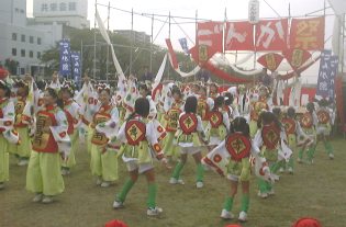 | 2007年10月13日瀬戸市役所前の瀬戸川河川敷緑地で「ごんか祭」 (主催: ごんか祭プロジェクト 後援: 瀬戸市)が催され、午後2時頃から 2時間程見てきました。 ちょうど各種団体等によるダンス等のパフォーマンスの最中でしたが、どのダンス も素晴らしかったです。 今回の祭のハイライトと思われる「瀬戸やきもの絵巻」では土の化身、火の化身 の役割をした子供達とごんかの大将がやきものが出来あがるまでの雰囲気を、 ユニークな踊りで演じていました。 1300年のやきものの歴史に基づく伝統と文化に誇りを持って市民が一体となって 温かみがある新しい瀬戸を創ろうという熱気が伝わってきました。 毎年、企画の中身が充実し魅力ある祭になっています。 【注】 1 「ごんか」 「やんちゃ」の意味です。 2 「ぐろにおらずに ごんかふけ」 頂いた「ごんか祭」のパンフレットの中に瀬戸の歌の「ごんか節」があり、その一節に 「ぐろにおらずに ごんかふけ」という瀬戸市の方言があります。 上記歌の注訳に「隅っこでいじけていないで、言いたいことをはっきり言ってやれ」 と書いてあります。 3 木節粘土 「陶祖」加藤藤四郎が1223年に中国(宋)でやきもの技術を学んだ後、日本に戻り、 瀬戸市の祖母壊で発見した世界最高品質といわれる粘土。 4 「陶祖」と「磁祖」 加藤四郎左衛門景正(通称藤四郎)が「陶祖」と呼ばれ、, 加藤民吉が「磁祖」です。 |