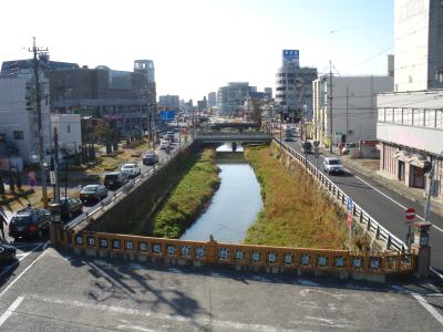 | 宮前橋歩道橋から西を見る <写真奥の記念橋付近は道路工事中> |