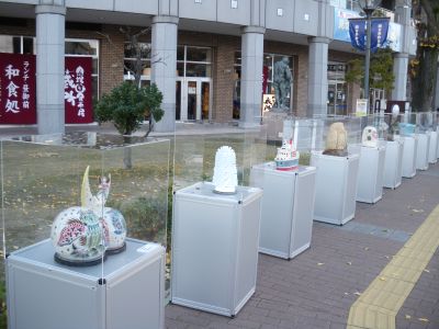 上記窯神橋に展示作品の一部 <瀬戸市 北村重則 ゼブラバック> |