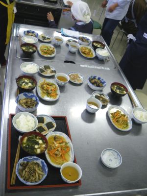 | 2010年1月9日の第1回目の男性の料理教室に引き続き、2010年1月23日、 第2回目男性の料理教室が行われました。 第1回目と同じく、5テーブルあり、1テーブルに4名の受講者と1名のインストラクターが 付いています。異なるのは料理の内容のみ。 タイトル: 男性の料理教室〜高齢者の食育講座(男性)中級編〜 企画: 瀬戸市健康課(成人保健係) 主催: 瀬戸市健康づくり食生活改善協議会 場所: 瀬戸市福祉保健センター(やすらぎ会館)5階調理実習室 日時: 2010年1月23日 午前10時〜午後1時 (受付 午前9時45分〜) 持参: エプロン、三角巾、布巾1〜2枚 参加費:300円/回 作った物: 味噌汁 焼きさばの南蛮漬け きのことちりめんじゃこのガーリック炒め 長いもの磯辺焼き |