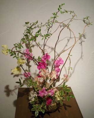 | 2010年2月7日付け中日新聞朝刊の「なごや東版」に「児童 生け花デビュー」と の見だしで記事が掲載されていたので、早速、当日、愛知県瀬戸市の「蔵遊前」で 子供の生け花発表展示会を見てきました。 生け花はもちろん、花器も児童が製作。 2階のギャラリーで生け花と花器を見た瞬間、余りに素晴らしいので、本当に児童が、 と疑問に思いましたが、作品の製作者本人である女児(作品を制作した時は 道泉小学校六年生で今度中学1年生)が3人居合わせていたので、確認したら、 やはり、児童の作品。 華道の流派に属する人の生け花と比べ、よりみずみずしく、軽やかで明るい印象を 受けました。 以下に一部の写真を掲載。その他は「ヤフーフォト」に掲載。 <中日新聞の記事> 文化庁事業「伝統文化こども教室」の一環で、瀬戸市で生け花を学んだ子どもたちが 六日、同市の蔵遊前で生け込みに取り組んだ。7日に同所で発表展示会が開かれる。 教室は草月流の梶原花江出さん=同市品野町=が講師を務め、児童15人が参加。 昨年六月から十回開かれた。県陶磁資料館で花器を作り、「パルティせと」で華道の 腕を磨いてきた。 作品にはマーガレットやヒヤシンスといった春の花が中心に生けられ、手作りの花器 と相まって優しげな雰囲気を漂わせている。落ちた花びらだけを器に添えたり、 象や飼い犬を花器に充てたりした作品もある。 木が茂る森のイメージをフリージアで表現した水南小学校3年、藤沢慶太郎君は 「いろんな生け方があると勉強になった。これからも花の名前を覚えていきたい」 と話していた。 |