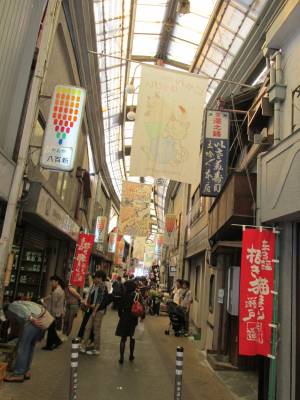 | 南北に伸びる「ばか道路」と東西に伸びる末広通り商店街との交差する箇所 *深川神社(創建771年;瀬戸市の産土神)への参道は宮前橋から北に伸びる。 一方、宮前橋から南側に伸びる道路を「ばか道路」と瀬戸市民は言う。 第二次大戦で延焼を防ぐために馬鹿に広い幅の道路にしたことがこの呼び名の 原因らしい。 |