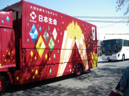 | 日本生命のバスの横の車体の絵(2つのトーチが描かれている) |