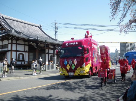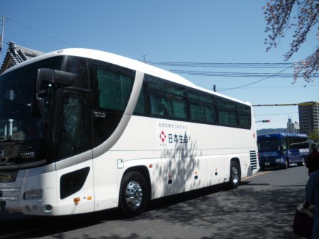 | 不動山覺城寺(愛称”おふどうさん”)前を通る日本生命のバス |