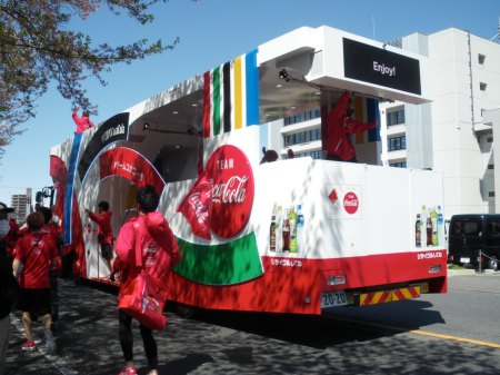 | ”おふどうさん”の前を通るコカコーラのバス |