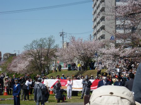 | 2021年4月5日、2020年東京オリンピック(新型コロナウィルスによるパンデミックで1年延長)の 聖火トーチリレーが愛知県で行われた。瀬戸市、春日井市、名古屋市など8か所で行われる 愛知県内の聖火トーチリレーの出発地が瀬戸市(深川神社〜瀬戸市役所前瀬戸川河川敷)で、 ランナー到着予定の午前10時30分の1時間前には多くの人がトーチリレーのセレモニー用に 区切られた瀬戸川河川敷や近くの吉田橋に来て待っていました。予定通り、ランナーが瀬戸川の 河川敷に到着。前日は雨だったが、オリンピック開催を祝福しているように当日は晴天。 |