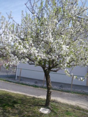 | マメナシ指定木 (自生木;水南小学校グランド 中央付近南のフェンスの外) |