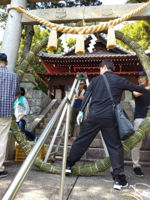 | 茅の輪設置中 | 茅の輪設置完了 |