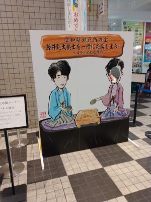 | パルティせと」に展示されている将棋 の藤井7冠を応援する装飾 「愛知県瀬戸市の宝 藤井聡太を 棋士を一緒に応援しよう」 |