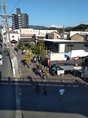 | 宮前橋歩道橋から招き猫ミュージアム、 おもだか屋、STUDIO894を見下ろす |
