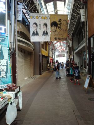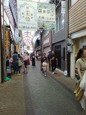 | 銀座通り商店街(藤井7冠を応援する垂れ幕が見える) | |