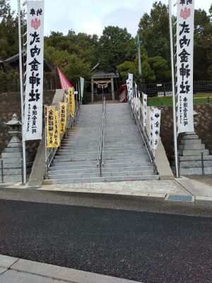 | 金神社の鳥居と式内金神社と書かれた幟 | |
