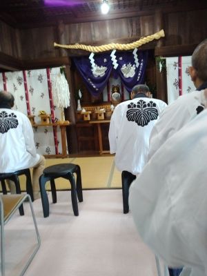 | 例大祭神事が行われた拝殿 (本来は本殿で執り行われる) |