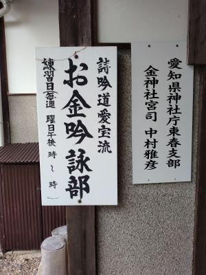 「愛知県神社庁東春支部 金神社宮司 中村雅彦」 と書かれた札 |
