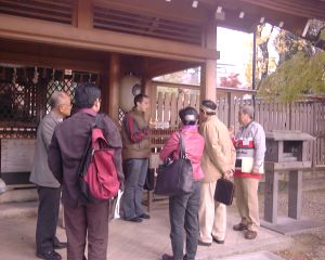 | 2004年11月27日、ビジターである名古屋学院大学と名古屋大学への留学生3名 (アメリカ、オーストラリア及びカナダ)及びガイド参加者並びに瀬戸英語ボランティア グループのメンバー合計約30名が3グループに分かれて、下記コースを巡りました。 コース: 深川神社 → 宮前橋の陶板 → 末広商店街 → 瀬戸染付研修所 @ 深川神社 1 鳥居、手水所 2 おみくじ、しめ縄、お参りの仕方 3 稲荷社 (写真1参照) 4 陶彦神社、藤四朗、お願い狛犬(陶製) (写真2参照) A 宮前橋の歩道橋から 1 染付焼きの陶板 B 末広商店街 1 着物・和服 (写真3参照) C マルチメディア伝承工芸館 − 染付研修所 1 研修所の概略 (研修所前での1グループの写真4参照) 2 1階研修室にて;瀬戸染付をロクロ成形する工程と絵付する工程 3 古窯館 4 交流館2階展示室にて;民吉と染付 5 本館2階にて;実習生の作品展示 深川神社では、宮参りと七五三のお祝いで参詣されていた家族に会いました。 About 30 people in total consisting of three students to Nagoya Gakuin University and Nagoya University (each from United States, Australia, and Canada) who play a role as visitor to a tour, participants as guide to the tour and some of the member from Seto English Volunteer Group divided into three groups, and came round the following course on Novermber 27, 2004. Course: Fukagawa Jinja shrine → Pottery plate on Miyamaebashi bridge → Suehiro shopping mall → Institute of Seto Blue and White Ceramics @ Fukagawa Jinja shrine 1 Torii; (or gateway at the entrance to a Shinto shrine), Hand wash place 2 Written oracle (or paper fortune), Sacredrope of Shinto, worshipping manner 3 Inari shrine (See Photo 1) 4 Suehiko shrine, Toshiro, Ceramic Komainu (See Note 1)realizing prayer(See Photo 2) 【Note 1】Ceramic Komainu Komainu is guardian dog and usually placed at the gate or in front of a Shinto shrine. A Pedestrian overpass of Miyamaebashi bridge 1 Seto Blue-and-White porcelain plate B Suehiro shopping mall 1 Kimono/Japanese clothes( See Photo 3) C Seto Municipal Center of Multimedia and Traditional Ceramics - Institute of Seto Blue and White Ceramics 1 Outline of the Training institute (See Photo 4 for a group in front of the Training Institute) 2 In the training room at 1st floorStages of an exchange building: Throwing and decorating of Seto Blue and White Ceramics 3 Old kiln space 4 In an exhibition room at 2nd floor of the exchange building; Tamikichi and Seto Blue and White Ceramics 5 In an Exhibition room at 2nd foloor of a main building; Exhibition of work by trainee We met a family who visited Fukagawa Jinja shrine to take their new borne baby to this shrine and cerebrate their child of three years of age in a festival (on November 15th) for children of three, five and seven years of age. |