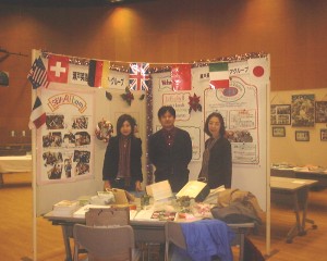 | SEV(瀬戸英語ボランティア・グループ)ブース <左:準備中> Booth for "Seto English Volunteers (SEV)" <left:under preparation> |