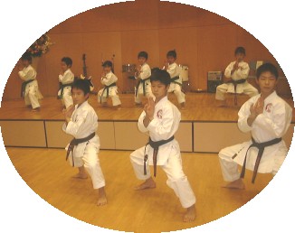 | アメリカ出身のパトリシアさんは現在瀬戸市の 空手道場で空手を教えています。 その生徒による「かた」の披露 Ms Patricia from the U.S.A. is instructing Karate at a Karate school in Seto City. Her students are showing "Kata" (or forms). |