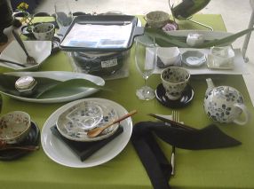 同左のテントの下に展示販売されている テーブルウェアセット Tableware sets displayed and sold under a tent pitched in front of the shop (shown at left photo) |