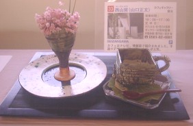 | 西山窯のカフェギャラリー <左:ウェブページ作者の食べかけ状態の器 右:他のお客の器> |