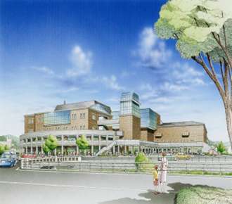 | 完成予定外観図 (瀬戸市作成の「瀬戸蔵」のホームページからダウンロードし加工) Expected external apearance (processed after being downloaded from the web page "Setogura" made by Seto City Hall |