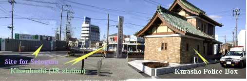 | 2002年9月瀬戸市民会館は取り壊され,新市民センター(仮称)が2005年3月オープンを 目指し、新築される事になりました。 2003年,新市民センターは「瀬戸蔵」と命名され、産業観光と市民交流を支援する施設 として市民会館が果たしてきた以上の機能が期待されています。更に、瀬戸市全体を ミュージアムに仕立てるという「せと・まるっとミュージアム」の拠点施設にもなります。 Seto civic hall is dismantled in September, 2002 and a new citizen center (tentative name) will be built, aiming at opening.in March, 2005. The new citizen center is named "Setogura" and is expected more function than the civic hall played as an institution which supports an industrial sightseeing and citizen exchange. This institution also turns into the base institution for Seto city plan which makes all area of the city museum. The plan is called "Seto-Marutto Museum". 瀬戸市は1929年愛知県で5番目に市制を敷かれしました。当時、市役所はここ蔵所町に あり、1959年に現在の場所である追分町に移転。市民会館は1959年から2002年まで 蔵所町にあり、2005年には「瀬戸蔵」として再生します。 Seto was reorganized as the 5th city at Aichi prefecture in 1928. At that time, Seto city office was located here in Kurasho-cho and has been transferred to Oiwake-cho which is the present place in 1959. Seto civic hall was located at Kurasho-cho from 1959 through 2002, and will re-start as "Setogura" in 2005. 「瀬戸蔵」の1階飲食店舗に、岐阜県土岐市のキャビンが内定。同社は名古屋市や 岐阜県多治見市などで和風建築を基調とした飲食店を展開している。同社が選考された 大きな理由は「長期的に安定した経営が期待できる事」と「陶器・陶磁器にたいする理解が ある事」という趣旨が中日新聞2003年10月の地方版(広報「せと」?)に報じられていました。 Restaurant called "Cabin" in Toki-city, Gifu was informally decided as the tenant at the space for eating and drinking at the first floor. The owner of this restaurant is developing restaurants which serve dishes in Japanese style building in several cities such as Tajimi city, Gifu prefecture. The reason why the restaurant has been selected as the tenant is that stable management in the long run is expected and that the tenant understand pottery and porcelain, said No. 1 local newspaper, Chunichi Shinbun circulated in October, 2003 (or Seto City PR brochure, "Seto"?). 【瀬戸記念橋駅】 (引用:JR東海バスのホームページ) 駅名由来の「記念橋」とは大正天皇行幸を記念して架けられた橋のこと。 市内にJR鉄道駅がない瀬戸市では、みどりの窓口がある瀬戸記念橋駅は、 新幹線特急券や指定券を購入する市民に重宝されている。残念な話ながら、 瀬戸市の区画整理事業によりこの駅の移転話が持ち上がっている。 【Seto Kinenbashi station】 <cited from:Web page of JR Tokai Bus> Seto Kinenbashi (literally translated as "commemoration bridge" means the bridge constructed by commemorating the Taisho Emperor outing. The Seto Kinenbashi station which has Ticket Reservation Office in Seto City without JR railroad station is found useful to the citizen who purchases a Shinkansen limited express ticket and a reserved seat ticket. The station will be allegedly moved to the other place under rezoning of land of the city. 【せと案内処(旧蔵所交番)】 <説明は2004年1月15日発行の「広報せと」から引用> 1939年に建てられ、瀬戸の名物になっていた蔵所交番が、2003年12月、末広町に 「せと案内処」として生まれ変わりました。 出来る限り既存の部材を使い、外壁は瀬戸の やきものを使っています。 また、建物の横にはエコ街灯も建てられました。太陽光発電、風力発電を利用した時計と 掲示板付きの街灯です。 せと・まるっとミュージアムの拠点の1つとして、ぜひお出かけ下さい。 【Seto Information Center <Ex Kurasho police box>】<Explanation is cited from "Kouhou Seto" issued on Jan. 15, 2004> Although Kurasho police box was built in 1939 and a local specialty, it ended the funtion of security and has come to function as city information center in December, 2003. Kurasho police box has been dismantled and reconstructed in a different place of Suehiro-cho while using the existing material as far as possible. The outside wall uses ceramic made by Seto. On the side of this Seto Information Center, An energy saving streetlamp was installed. This energy saving streetlamp is equipped with a clock and a notice board using solar power generation and wind power generation. Please come to this Information Center as one of bases for visiting "Seto Marutto Museum" (meaning "whole Seto city colored like museum"). |