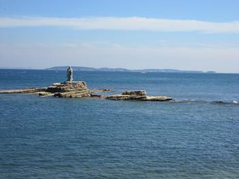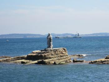 | 2013年10月2日第2回知多四国八十八所霊場めぐりの日帰りツアーへ (陶都観光サービスが企画実施)。 今回は18ケ寺+番外6ケ寺の計24ケ寺。篠島と日間賀島の寺へも貸切の船で巡った。 初回と同じく、瀬戸信用金庫本店前で乗降し、午前7時10分出発、午後4時35分帰着。 <往路>大森(国道302)→名二環→知多半島道路→南知多道路(美浜IC)→ 一般道→寺 <帰路>南知多道路→知多半島道路→大府PA(トイレ休憩15:30-15:45)→大高IC(下車) →大府IC→名古屋南IC(名二環)→大森(国道302)→瀬戸信用金庫本店前(16:35) 36番札所の天永山遍照寺見学後、上陸大師を見学(11:10-11:25)、その後近くの海の 見える喫茶店「ベイ・ナンナン」でランチ(昼食 11:30 - 12:10)。 昼食後、貸切観光船「まつしま6」で大井漁港から日間賀島→篠島へ。 |