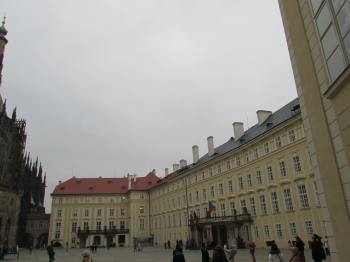 | 159旧王宮 (窓がルネサンス様式;左の屋根が薄赤色の建物; プラハ城内の聖ヴィート大聖堂の向かい) |