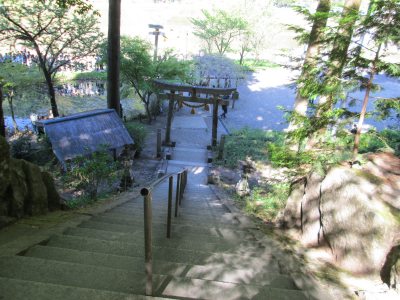 | 根道神社から「モネの池」付近を見下ろす |