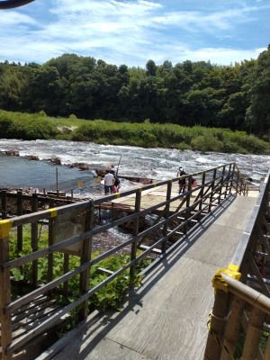 | 広瀬簗の簗場(食事の席の近くから見る) |