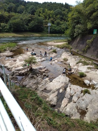 | 2021年8月11日、夫婦と長男家族で愛知県豊田市西広瀬町の広瀬簗へアユ料理を 食べに行ってきました。 瀬戸市の自宅から猿投グリーンロードを使い枝下(しだれ)ICを降り、東へ5分位で 広瀬簗に午前10時到着(開店は午前10時)。所要時間は約30分。 既に駐車場には10台以上が駐車されていた。食事を終えて、矢作川や飯野川付近 で孫と遊んで帰る頃(12時30分頃)には駐車場(収容台数50台位)は満車。 |