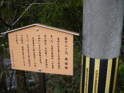 五十二ノ三馬宿跡 (曾木には大草と中洞に馬宿があった。 大草の馬宿は(小木曽利十郎氏)今は無く、 道を挟んだ向かいがその跡地である。 名古屋から帰る馬はここで泊って、次の日は 上村の横打までの道を、荷物を脊に歩いた ものである。) |