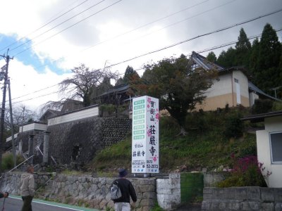 | 荘厳寺境内の三十三観音 「三十三観音」は仏教の観音菩薩が衆生済度のために三十三の姿に変身するという経典 の教えに由来する、三十三の観音様を祀る霊場を巡る巡礼の総称。 観音様とは人々の苦しみを聞き、救ってくださる慈悲深い仏様である観音菩薩 (観世音菩薩、観自在菩薩)の通称) |