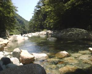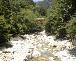 | 阿寺橋 (橋の北側で多くの家族が 水遊びをしている) Adera bridge (Msny family are doing water play north of this bridge) |