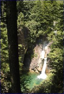 「牛が滝」 (展望台から階段を降り 滝に近い個所から見る) "Gyugataki" waterfall (Getting down stairs and viewing at a place near the waterfall.) |